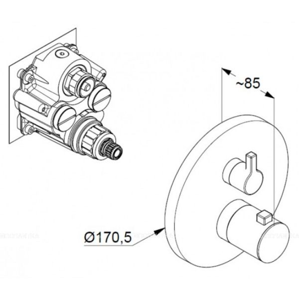 Встраиваемый смеситель для ванны и душа Kludi Nova Fonte Puristic с термостатом хром 208300515 купить