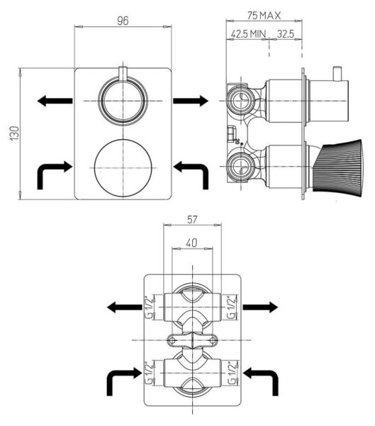 • Встраиваемый монтаж скрывает все соединения и оставляет на виду только рычаги управления, экономя пространство.