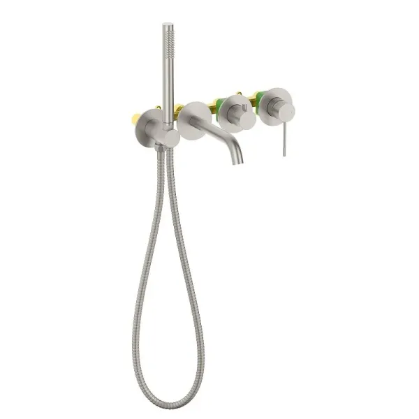 Встраиваемый смеситель Timo Saona 2314 предназначен для монтажа в твердой или полой стене. Уникальная дизайнерская модель с раздельными горизонтальными блоками, создаст неповторимый современный интерьер в ванной комнате. Основные преимущества встроенного смесителя: коммуникации, крепления и механизмы спрятаны в стену и видны только декоративные элементы, установить встроенный смеситель можно в любом месте. Стильная лейка-карандаш удобна в использовании и фиксируется в держателе с подключением душа. Регулировка температуры и напора воды осуществляется джойстиком справа. Переключение потока воды с излива на ручную лейку осуществляется поворотом ручки дивертора. Сложностей монтажа не возникает при установке смесителя опытным сантехником. Внимательно изучите инструкцию по монтажу и эксплуатации.