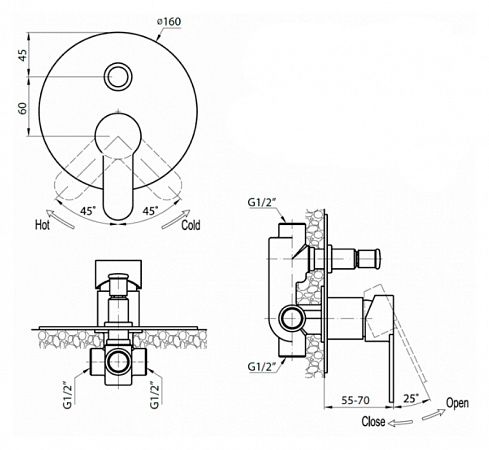 Оснащение: скрытая монтажная часть, дивертор