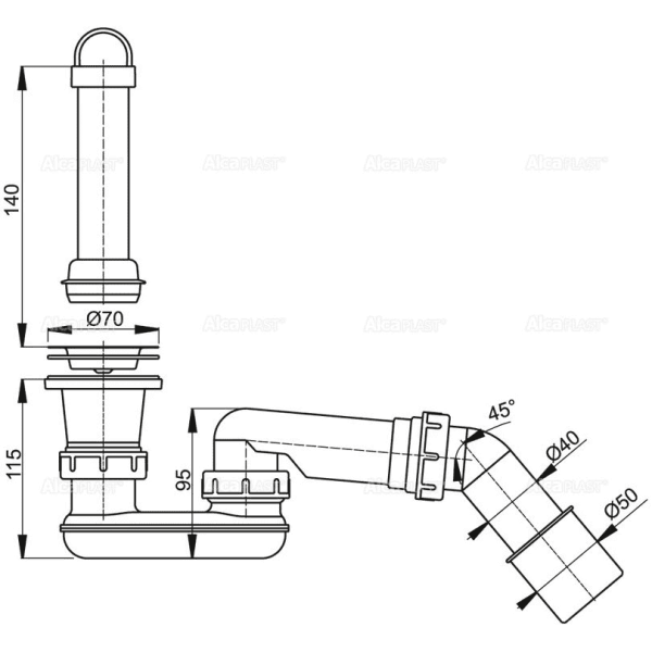 Выпускной комплект для душевого поддона AlcaPlast с гидрозатвором и коленом A462-50