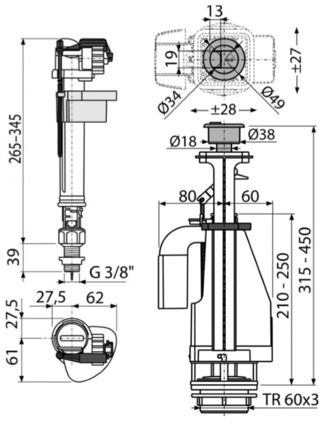 • Конструкция позволяет регулировать высоту механизма в зависимости от высоты бачка