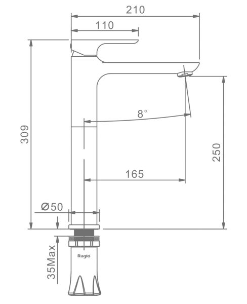 • Высота смесителя: