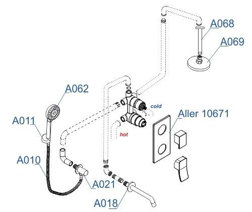 Wasserkraft А171668 Встраиваемый комплект для ванны с верхней душевой насадкой, лейкой и изливом