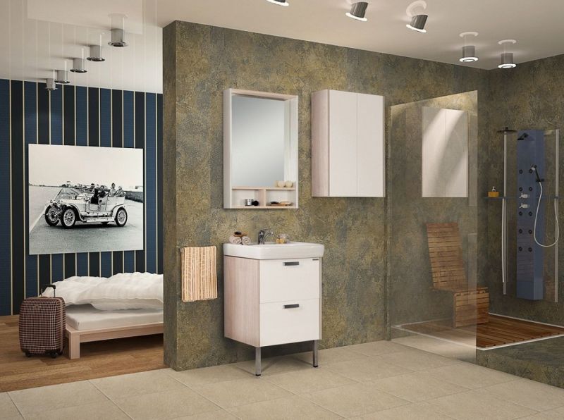 Зеркальный шкаф Акватон Йорк 55см белый/ясень фабрик 1A173202YOAV0
