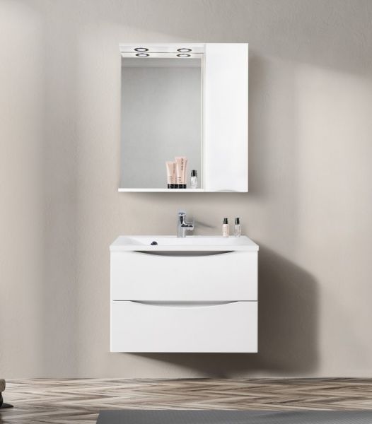 Зеркальный шкаф BelBagno с подсветкой правосторонний 70x75см Bianco Lucido MARINO-SPC-700/750-1A-BL-P-R