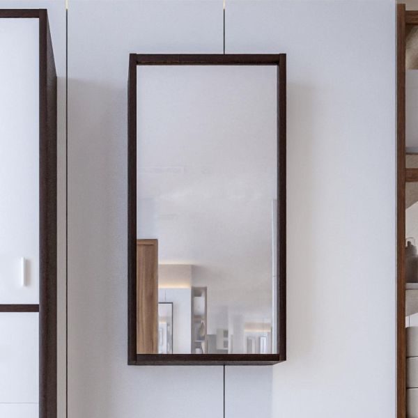 Внутреннее содержание шкафа умело организовано: разнообразные полки и отсеки позволяют удобно разместить все необходимые аксессуары – от косметики до бытовой химии. Зеркало, интегрированное в фасад, визуально расширяет пространство и облегчает утренние рутинные процедуры.