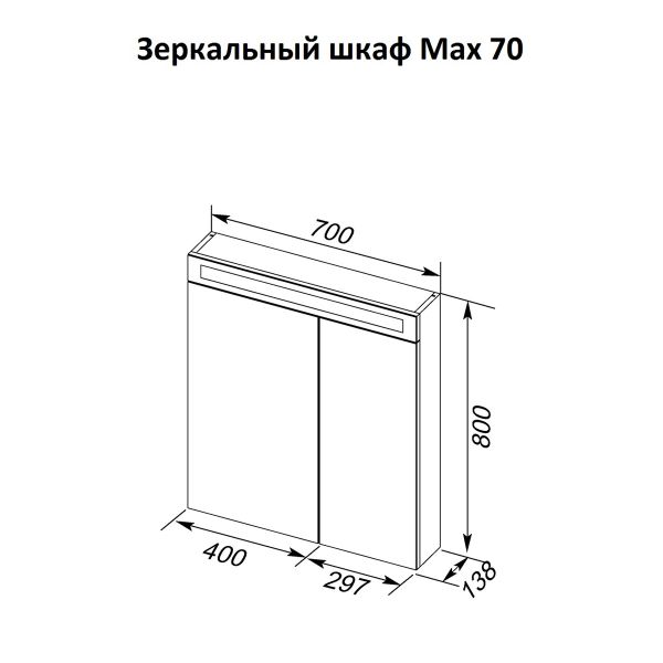 Зеркальный шкаф с LED-освещением с выключателем и электрической розеткой. Крепление к стене - гребенка. Подходит ко всем коллекциям.