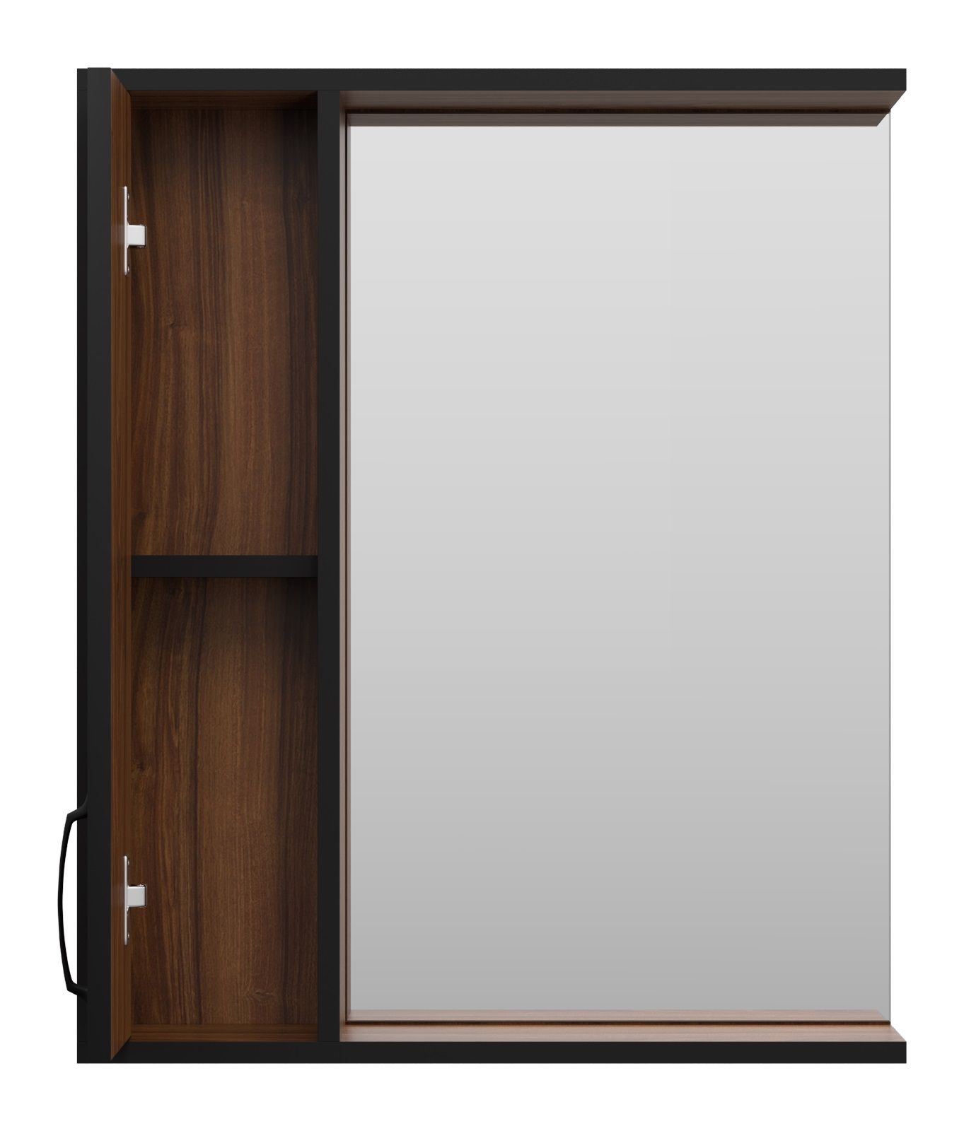 Зеркальный шкаф Misty Кедр 60см левый чёрный/орех
