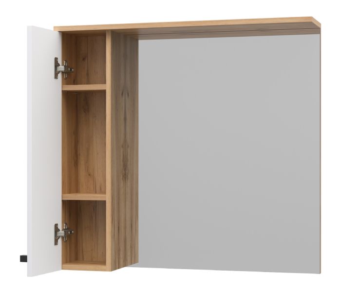 Зеркальный шкаф Misty Крафт 80см левый белый/дуб крафт золотой