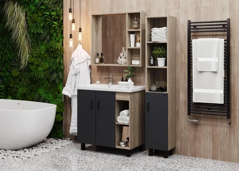 Зеркальный шкаф выполнен из ЛДСП, устойчивой к механическим воздействиям, перепадам температур и высокой влажности.
