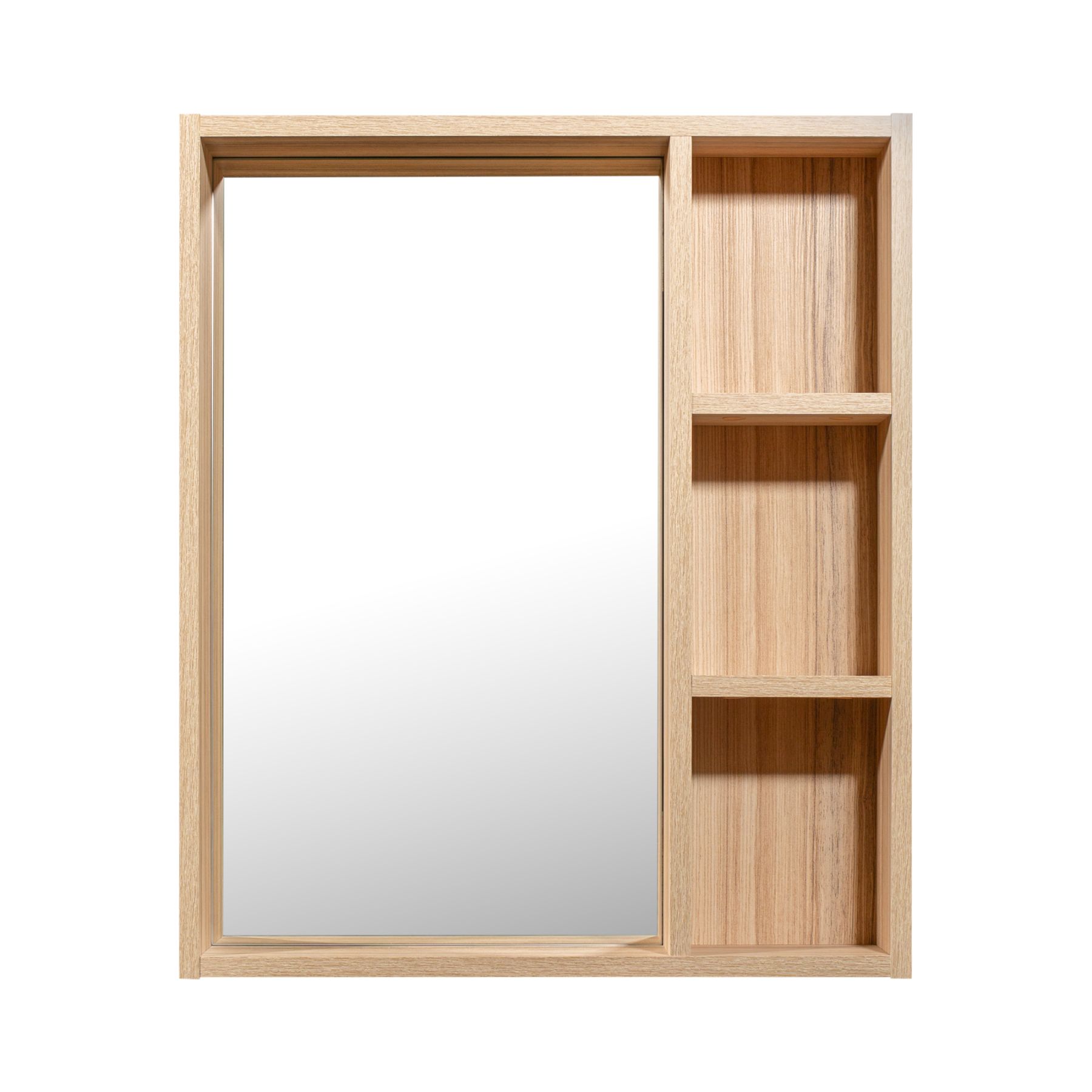 Зеркальный шкаф для ванной RUNO ЭКО - превосходное решение для современного оснащения ванной комнаты. Зеркало для ванной ЭКО - это стильное сочетание натурального дерева корпуса из ЛДСП в цвете лиственница и зеркальной задней стенки. Шкафчик в ванную оснащён нижней полкой и двумя открытыми полками сбоку. Шкаф в ванную - универсальный (для смены ориентации изделие поворачивается на 180 градусов, что достигается посредством переноса навесов на противоположные отверстия). Мебель для ванной RUNO - красота и практичность в мелочах!