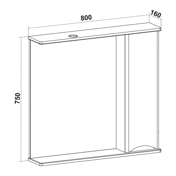 Зеркальный шкаф Runo правый Афина 80 (00-00001172)