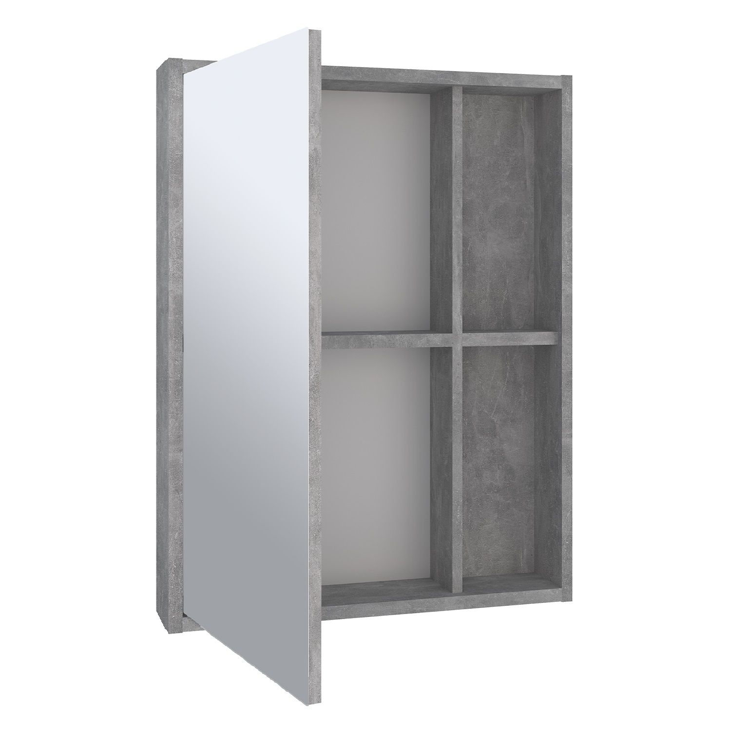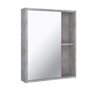 Зеркальный шкаф для ванной RUNO ЭКО - превосходное решение для современного оснащения ванной комнаты. Зеркало для ванной ЭКО - это стильное сочетание текстуры серого необработанного бетона на корпусе из МДФ. Шкафчик в ванную имеет одну распашную дверцу с зеркальным фасадом и две открытые полки. Шкаф в ванную - универсальный (для смены ориентации изделие поворачивается на 180 градусов). Внутри шкафа - одна внутренняя полка. Мебель для ванной RUNO - красота и практичность в мелочах!
