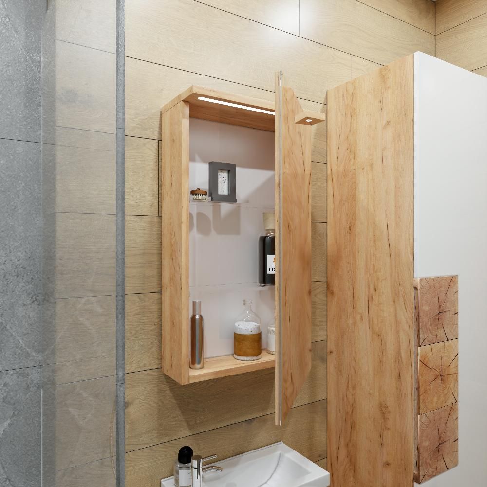 Зеркальный шкаф с подсветкой Бриклаер Форест 4627125414695 40 см дуб золотой/антрацит купить