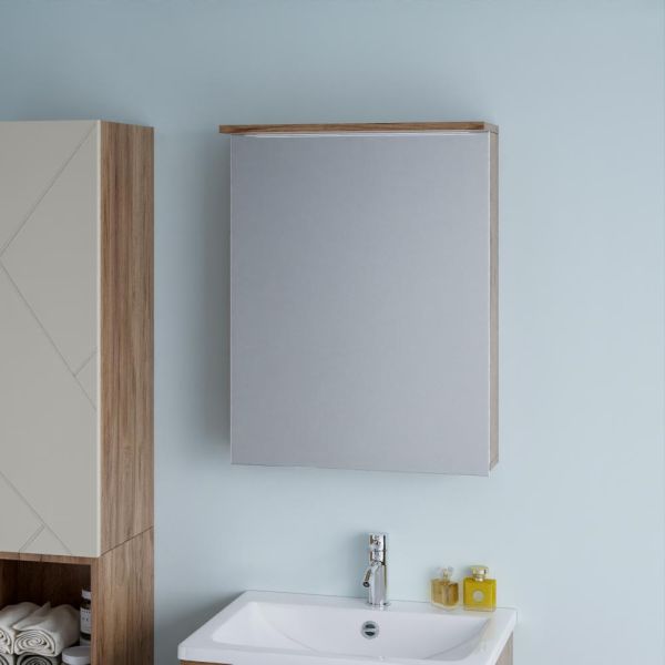 Зеркальный шкаф с подсветкой Бриклаер Кристалл 4627125417191 56 см дуб крафт табачный купить