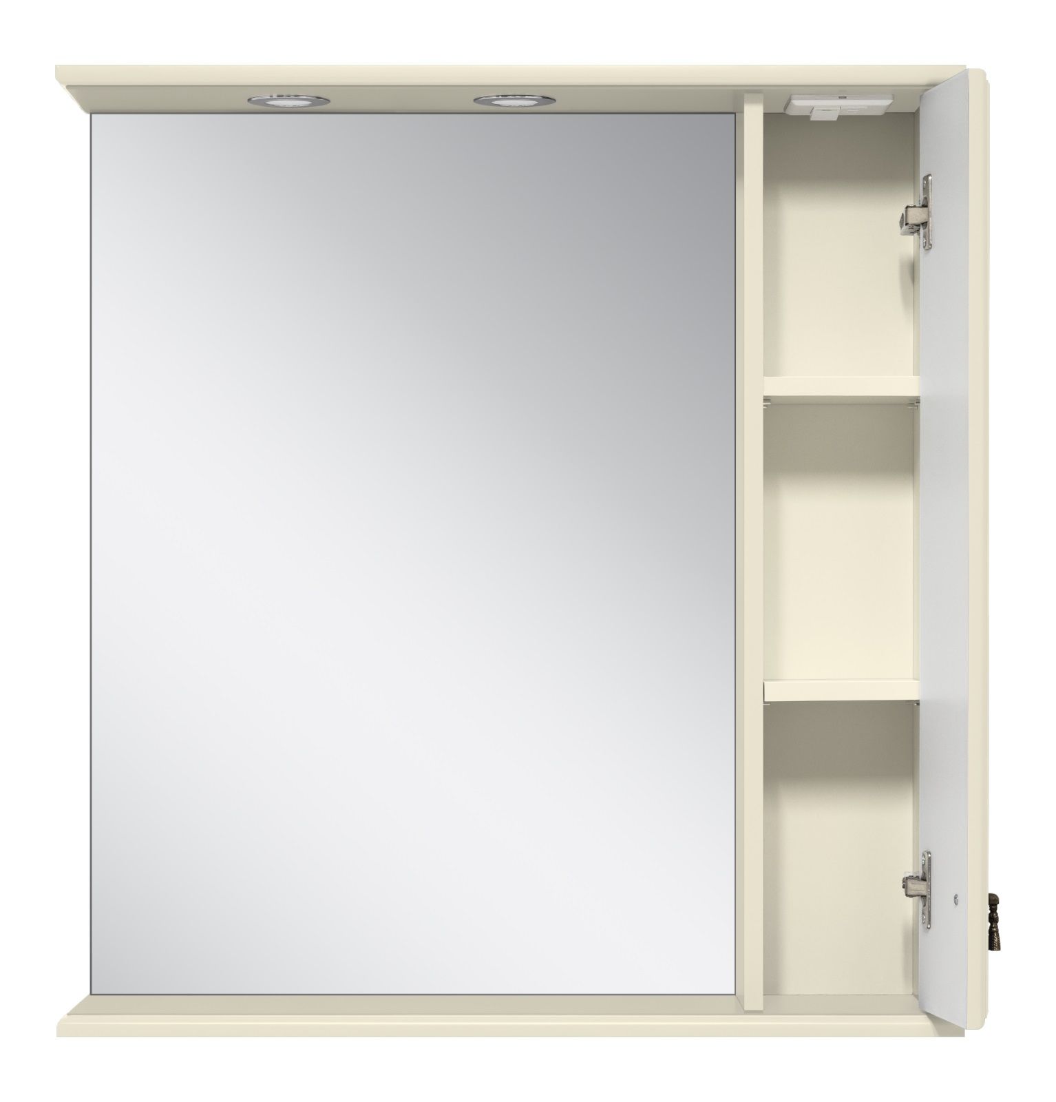Зеркальный шкаф с подсветкой Misty Лувр 85см правый слоновая кость