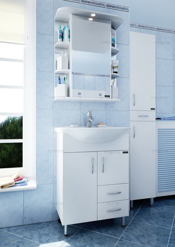 Зеркало-шкаф СанТа не только функциональный предмет интерьера ванной комнаты, но замечательное эргономичное дополнение дизайна, как небольшого, так и крупного помещения.Компания СанТа использует при производстве высококачественные водоотталкивающие материалы (ВЛДСП), соответствующие всем необходимым требованиям безопасности. Серия отличается превосходным дизайном с соблюдением всех значимых элементов современного стиля. Основным цветом, в котором выполнено шкаф-зеркало СанТа является белый, отлично подходящий большинству дизайнерских решений. Шкаф-зеркало предусматривает удобную и вместительную систему хранения, состоящую из полочек.Страной бренда СанТа является Россия, все товары производятся с выполнением соответствующих стандартов качества, что позволяет быть полностью уверенными в долговечности и надежности. Зеркало-шкаф СанТа это абсолютный комфорт в современной ванной комнате.