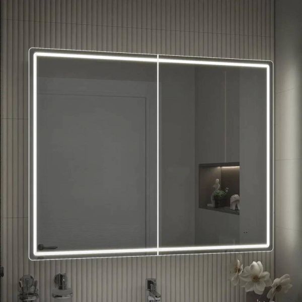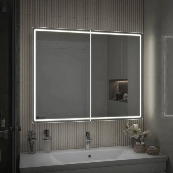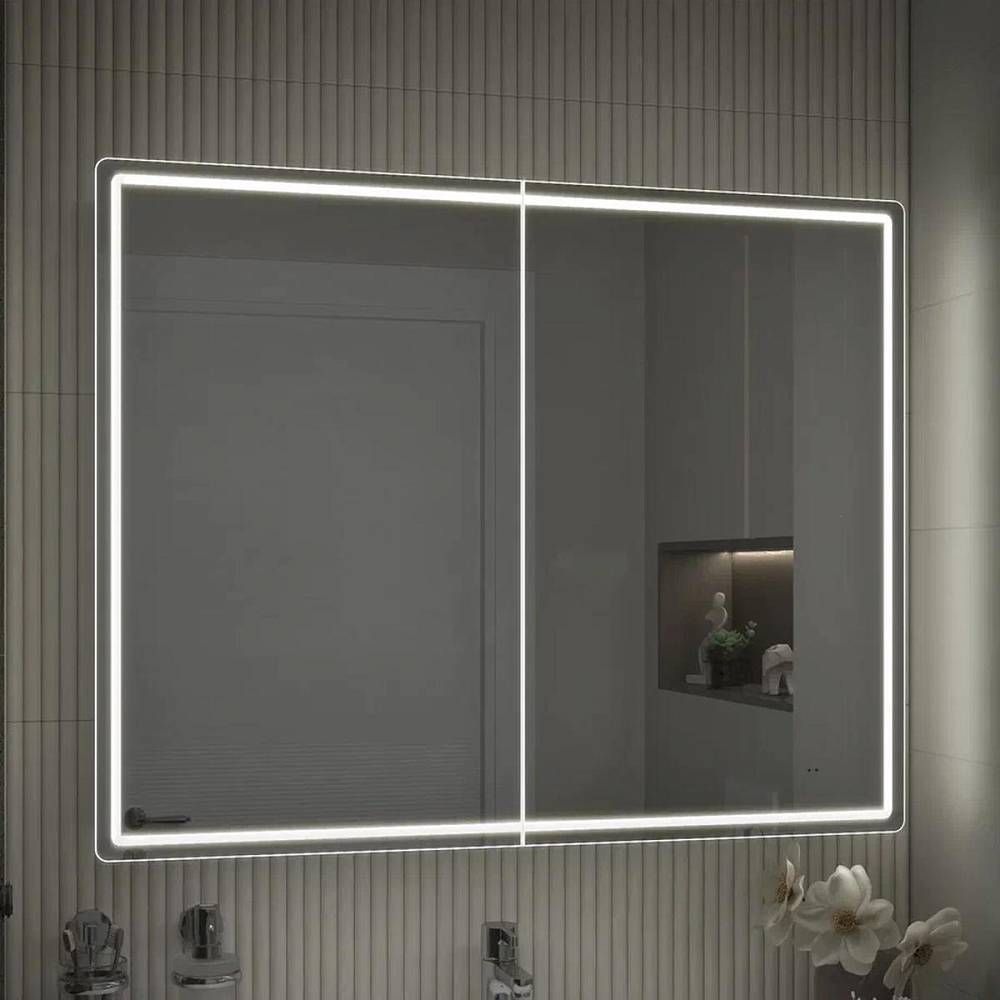 Зеркальный шкаф VIGO Geometry 222, 100 см. 2 дверцы, петли с механизмом доводчика, 4 стеклянных полки, светодиодная подсветка по периметру, бесконтактное включение (на взмах), функция антизапотевания.