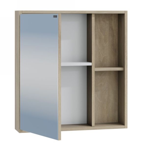 Комплектация: на дверках петли плавного закрывания - 1 шт.Зеркальный шкаф "Прима 60" дуб светлый НП