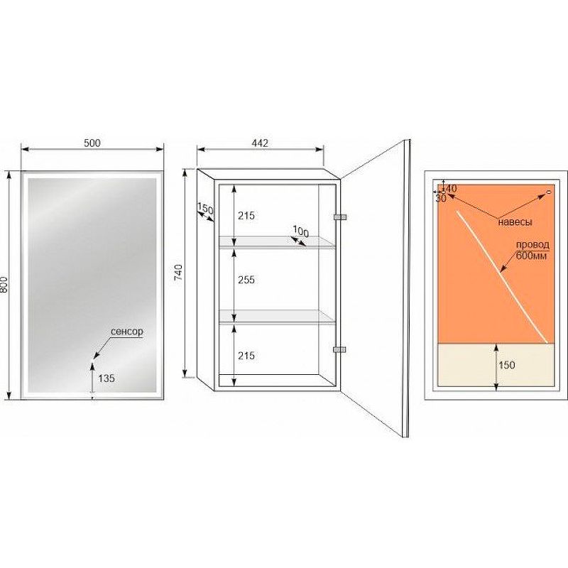 Тип:зеркало-шкаф с подсветкой