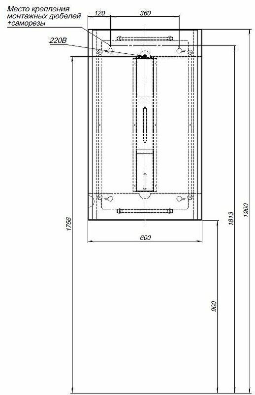 Габариты (ШхВхГ): 600х1000x40 мм.