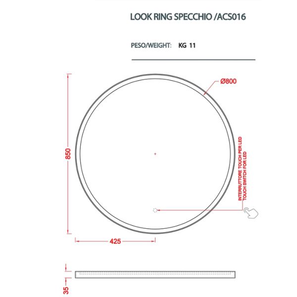 Зеркало Artceram Lord ACS016 17 в металлической раме с LED-подсветкой и сенсорным выключателем черное купить