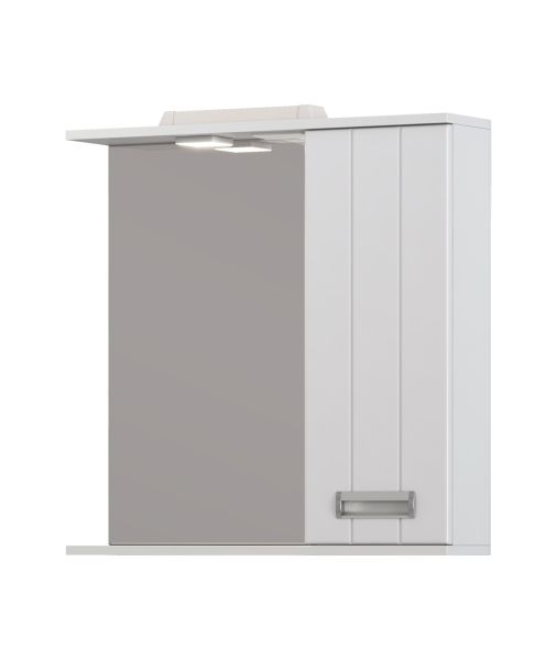 1 дверца; 2 полки ЛДСП; ручка металлическая хромированная; 1 светодиодный светильник, включатель с розеткой.