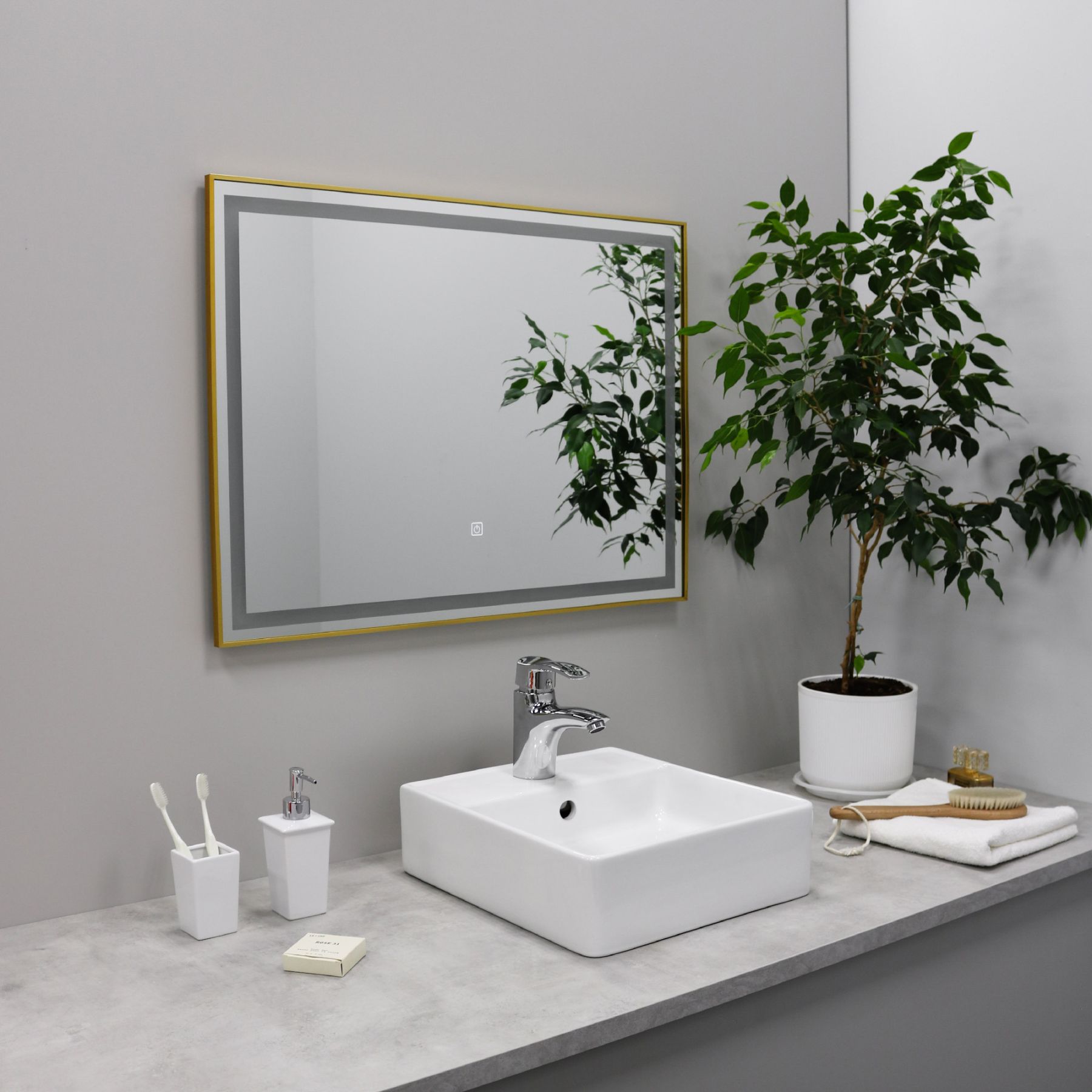 Зеркало FIXSEN с подсветкой LED прямоугольное 90х70 см золото-сатин (FX-2090G)