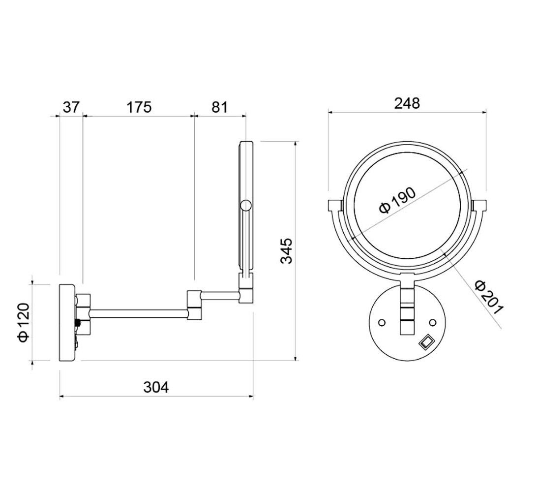 • первая сторона - увеличение 5х, вторая сторона - обычное зеркало