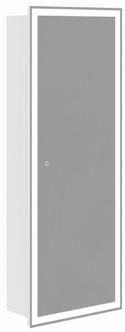 Зеркало-пенал Делавэр 45 оснащено распашной зеркальной дверью. Зеркало с круговой областью пескоструя, внутри 3 стеклянные полочки. Петли у двери с доводчиками. Зеркало-пенал можно сделать правого или левого открывания. Видимые части зеркального шкафа - LED зеркало, у которого задняя стенка закрыта коробом из АВС-пластика. Подсветка на зеркале включается и выключается нажатием кнопки на самом зеркале. Сенсорный выключатель с регулировкой яркости. На боковине снаружи находится розетка.