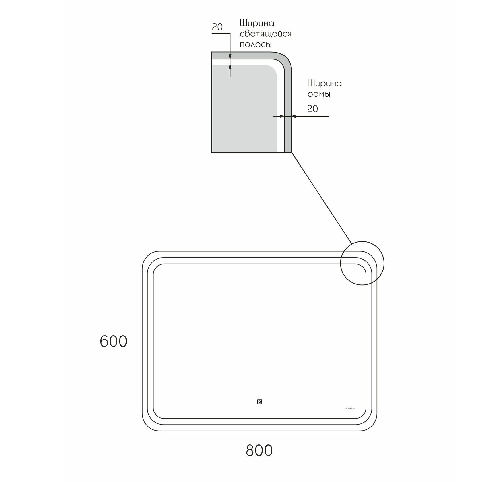 Предлагаем вашему вниманию зеркало с LED подсветкой и черной окантовкой Reflexion Happy 800х600.