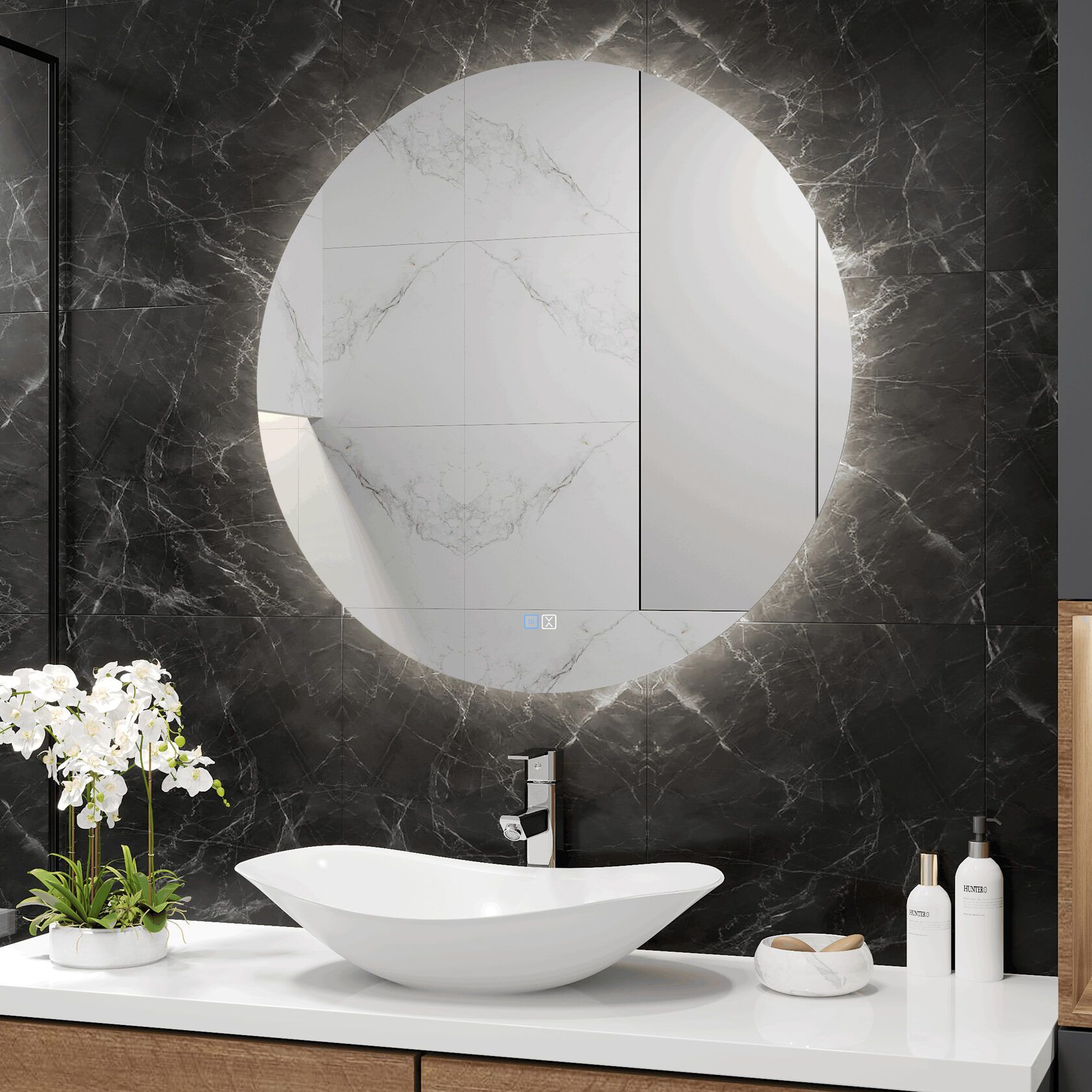Предлагаем вашему вниманию круглое зеркало с ореольной LED подсветкой Reflexion Hoop D800 с функцией антизапотевания.