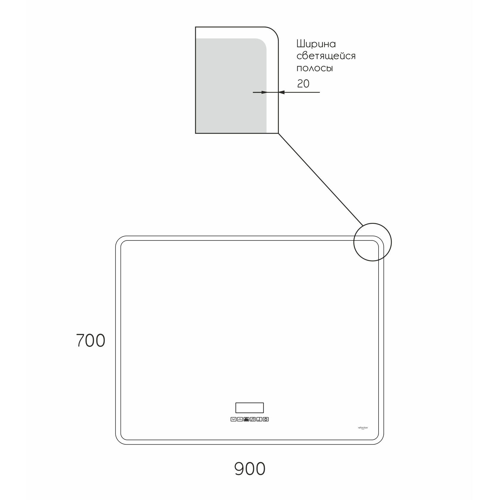 Предлагаем вашему вниманию зеркало с LED подсветкой, медиасистемой с Bluetooth, FM приемником часами, термометром и системой антипар Reflexion Party 900х700