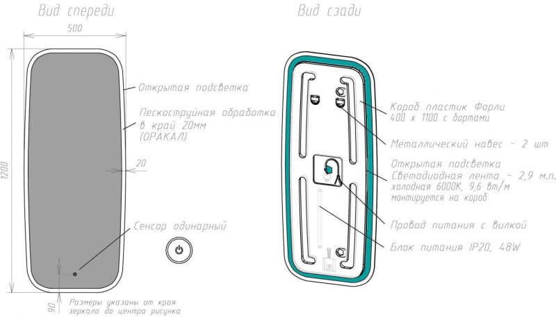 Зеркало с холодной подсветкой Art&Max Forli 50x120см AM-For-500-1200-DS-F