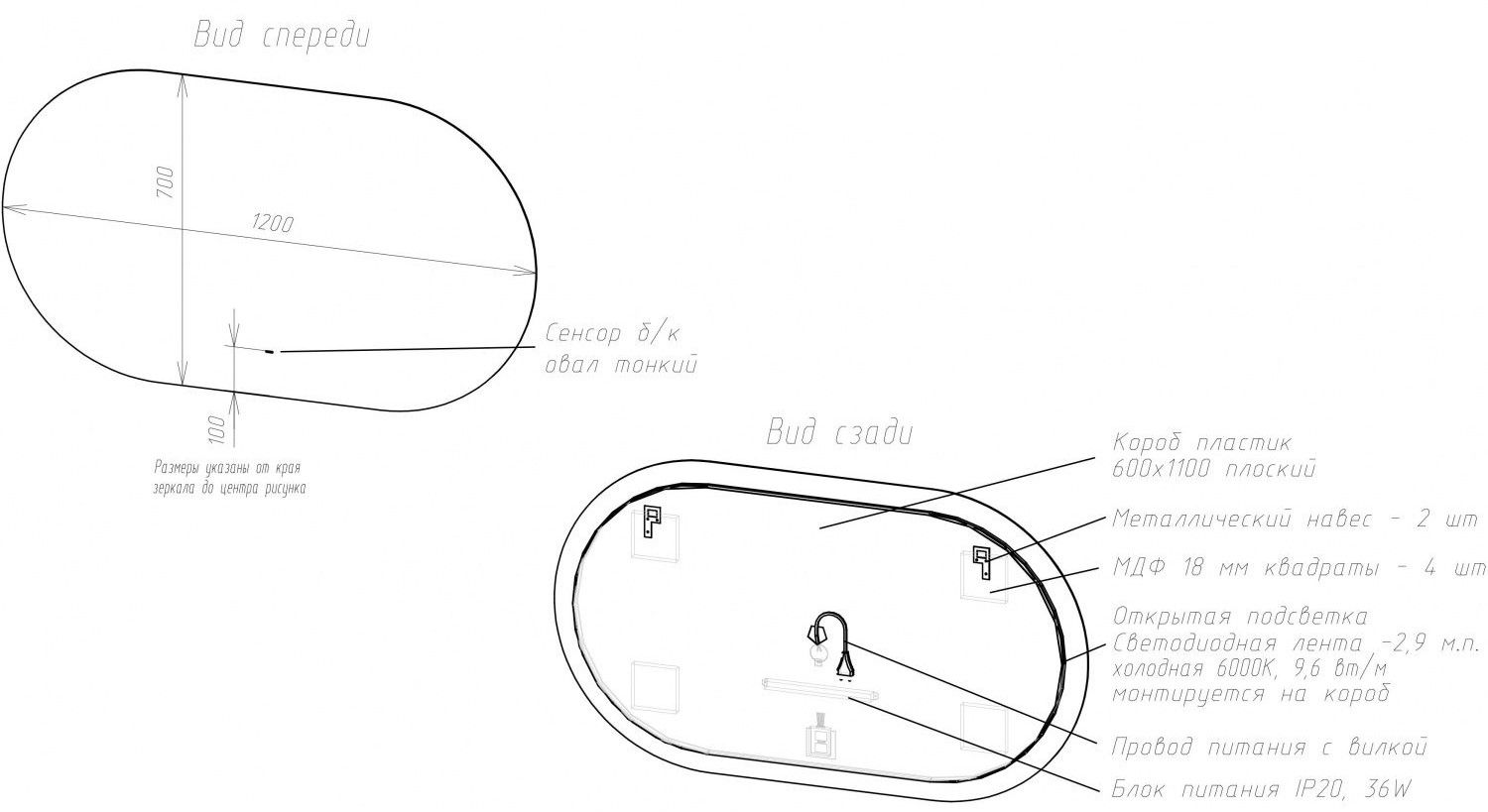Зеркало с холодной подсветкой Art&Max Torino 120x70см AM-Tor-1200-700-DS-F