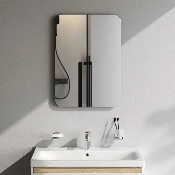 Край зеркального полотна обработан еврокромкой что обеспечивает надежную защиту от случайных порезов при контакте с изделием.