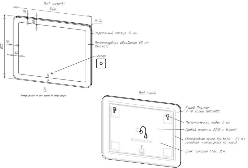 • Толщина зеркального отступа: 10 мм