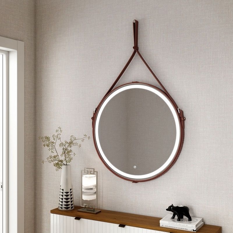 Зеркало Art&Max выполнено в современном стиле и отлично дополнит интерьер любой ванной комнаты. Благодаря подвесной конструкции модель не занимает много места, что позволяет экономить пространство в небольшой ванной комнате. Модель оснащена ремнем и встроенной светодиодной LED подсветкой с диммером. Ремень выполнен из натуральной кожи коричневого цвета.В комплект поставки входит крепеж и ремень.Особенности: