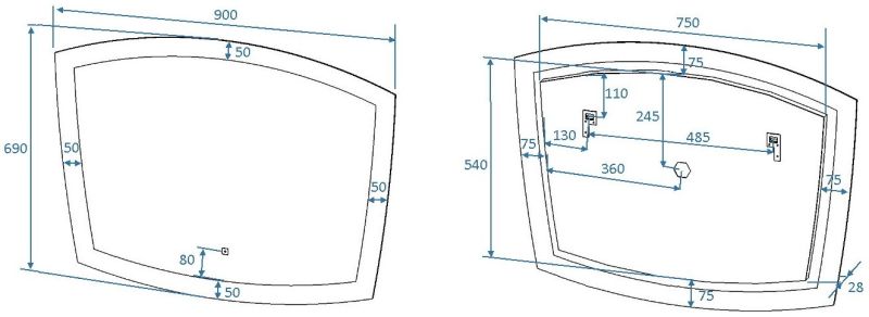 Зеркало с подсветкой Art&Max Roma 90x70см AM-Rom-900-700-DS-F