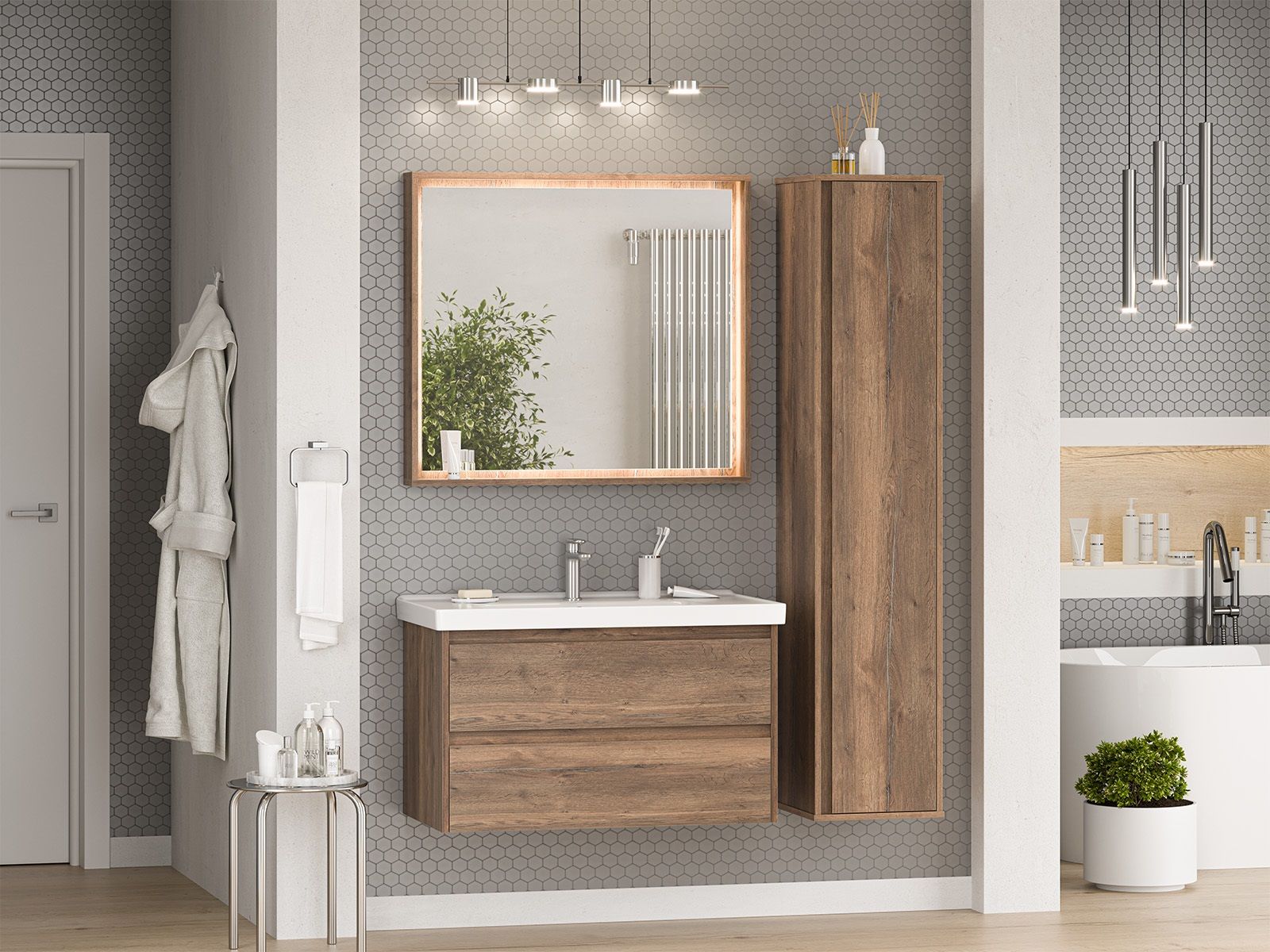 Зеркало с подсветкой для ванной комнаты — это элемент интерьера, который сочетает в себе функции, эстетику и современный дизайн. Его изящная форма и тонкие линии легко вливаются в любое пространство, создавая атмосферу утонченности и уюта.Интегрированная светодиодная подсветка обрамляет зеркало, даря мягкий, рассеянный свет, который не только позволяет удобно наносить макияж, но и наполняет ванную комнату теплом и позитивной энергией.Классический дизайн позволяет использовать его в различных стилях – от минимализма до современного эклектичного оформления. Оно прекрасно вписывается в любую цветовую гамму, будь то нейтральные тона или более яркие акценты.