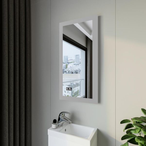 Зеркало с подсветкой Бриклаер Вега 4627125414190 с часами 40 см на взмах руки