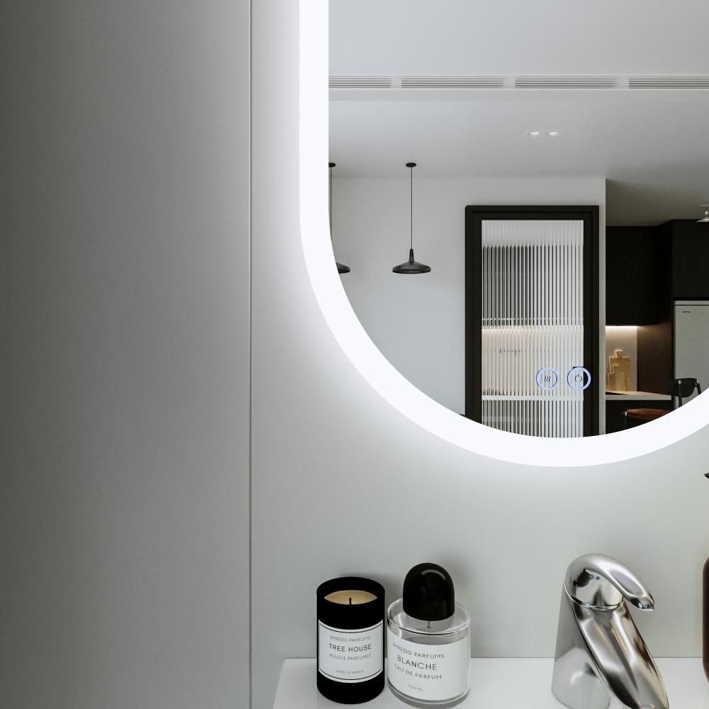 Зеркало с подсветкой Бриклаер Вега 4627125415715 с голосовым управлением и подогревом 55 см сенсор на зеркале купить