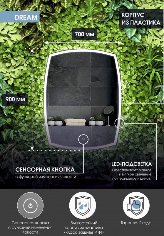 Зеркало "Dream Led" 700х900LED подсветка 6000Ксенсорный выключатель с функцией димирования