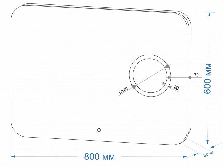 Зеркало "Elegant Led" 800х600ореольная LED подсветка 6000Ксенсорный выключатель с функцией димированиявстроенное увеличительное зеркало (линза) с 3-х кратным увеличениемдополнительная подсветка вокруг линзы