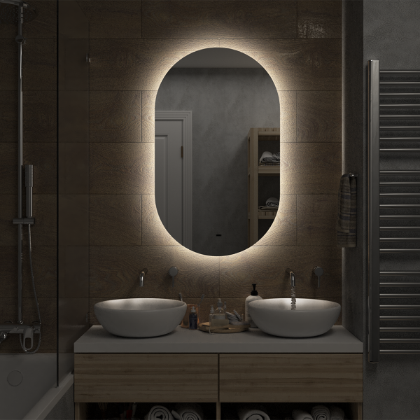 Зеркало "Fleur Led" 600х1000 с бесконтактным сенсором, холодная подсветкаLED подсветка 6000Кбесконтактный сенсор с функцией димированияореольная подсветка