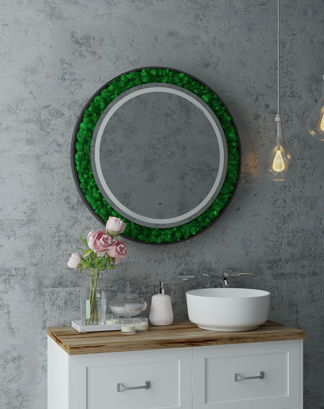 Зеркало "Forest Led" d 800 с бесконтактным сенсоромLED подсветка 6000Кбесконтактный сенсор с функцией димированиядекоративный мох