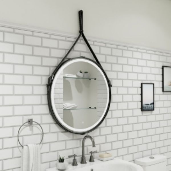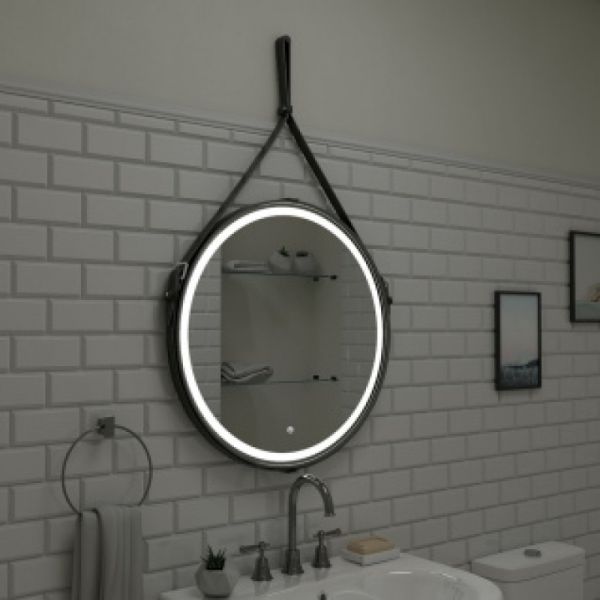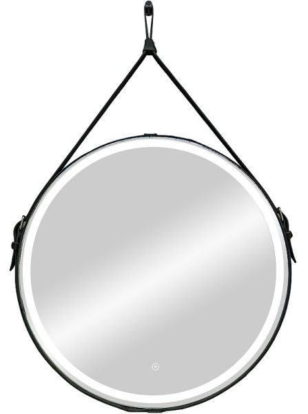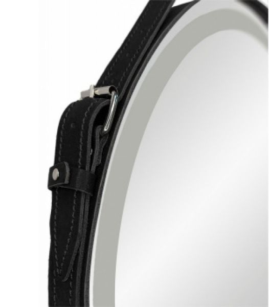 Зеркало "Millenium Black Led" D 500 на ремне из натуральной кожи черного цветаLED подсветка 6000Ксенсорный выключатель с функцией димированияремень из натуркожи черного цвета