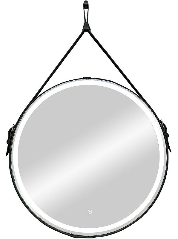 Зеркало "Millenium Black Led" D 500 на ремне из натуральной кожи черного цветаLED подсветка 6000Ксенсорный выключатель с функцией димированияремень из натуркожи черного цвета