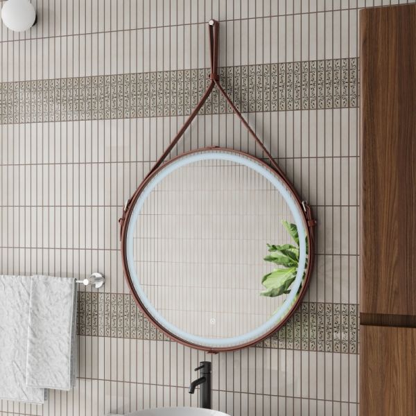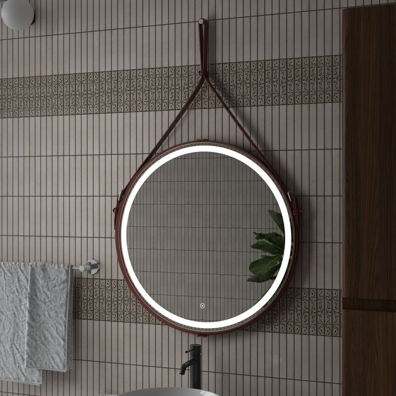 Зеркало "Millenium Brown Led" D 500 на ремне из натуральной кожи коричневого цветаLED подсветка 6000Ксенсорный выключатель с функцией димированияремень из натуркожи коричневого цвета